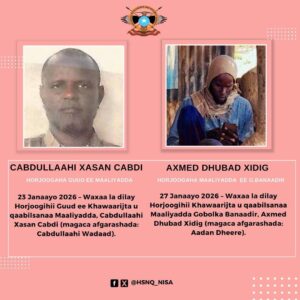 Muqdisho,(SONNA):- Hayโ€™adda NISA ayaa xoojisay dagaalka ka dhanka ah maalgelinta argagixisada, iyada oo howlgalladii ugu dambeeyay lagu soo afjaray Horjoogeyaashii laf-dhabarka u ahaa baadda iyo boobka hantida dadweynaha Soomaaliyeed ay Khawaarijtu ku hayeen.