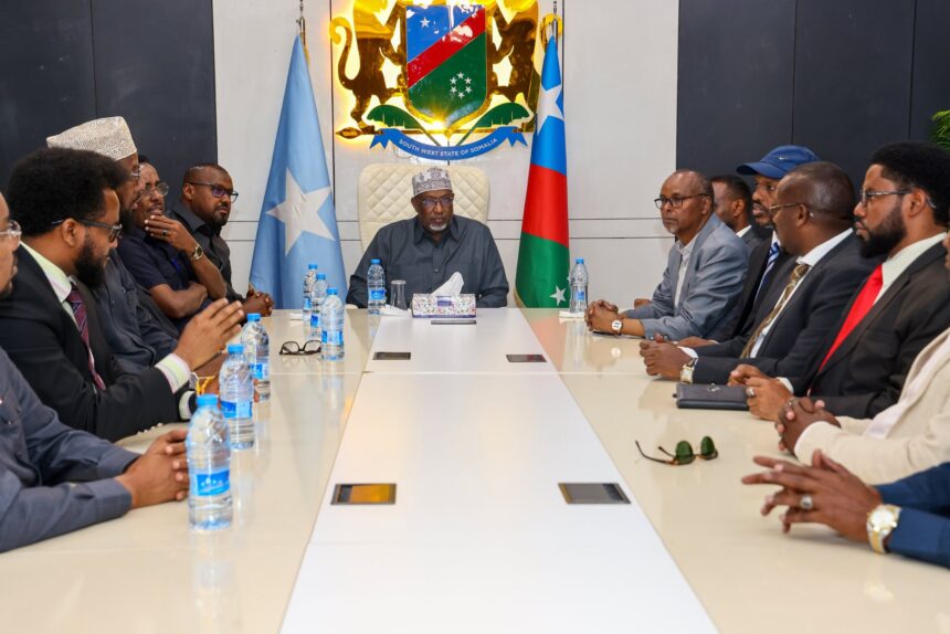 Guddoomiyaha Golaha Shacabka ee Baarlamaanka Jamhuuriyadda Federaalka Soomaaliya Mudane Sheekh Aadan Maxamed Nuur (Madoobe) oo howlo shaqo u jooga Magaalada Baydhabo ee caasimadda KMG ah ee Dowlad Goboleedka Koonfur Galbeed ayaa maanta kulan la qaatay sii hayaasha wasiirada Dowlad Goboleedka Koonfur Galbeed, waxaana uu warbixin ka siiyey ujeedka imaanshaha wafdiga uu hogaaminayo, isagoo faray in la dardargeliyo howlaha wasaaradaha Koonfur Galbeed, si aysan hakad u gelin adeegyada loo haayo bulshada.