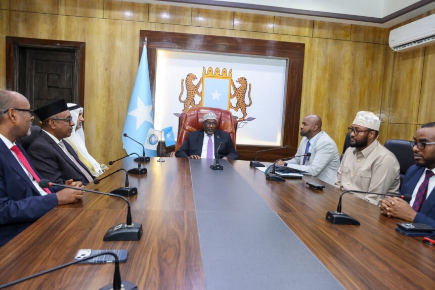 Muqdisho(SONNA):- Kusimaha Madaxweynaha Jamhuuriyadda Ahna Guddoomiyaha Golaha Shacabka ee Baarlamaanka Jamhuuriyadda Federaalka Soomaaliya Mudane Sheekh Aadan Maxamed Nuur (Madoobe) ayaa xafiiskiisa kulan mira dhal ah kula qaatay Guddoomiyaha Golaha Baarlamaanka caalamiga ah ee Iscafinta iyo Nabadda Axmed bin Maxamed Al-Jarwaan oo isaga iyo wafdi uu hogaaminayo shalay soo gaareen Magaaladda Muqdisho.