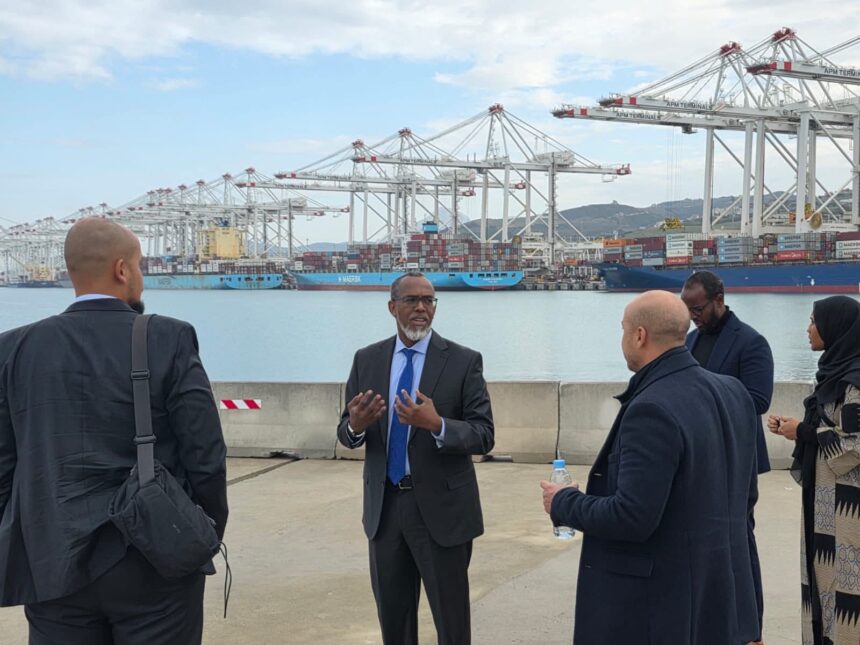 Tangier (SONNA): Wafdi uu hoggaaminayo Maareeyaha Guud ee Dekadda Muqdisho Danjire Maxamed Cali Nuur (Ameeriko) ayaa booqasha shaqo ku tagay Dekadda Tanger ee dalka Morocco kadib marti qaad rasmi ah oo uu ka helay Agaasimaha Guud ee Tanger Med Engineering mudane Nasser Tlassellal.
