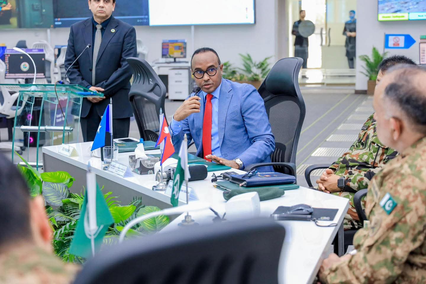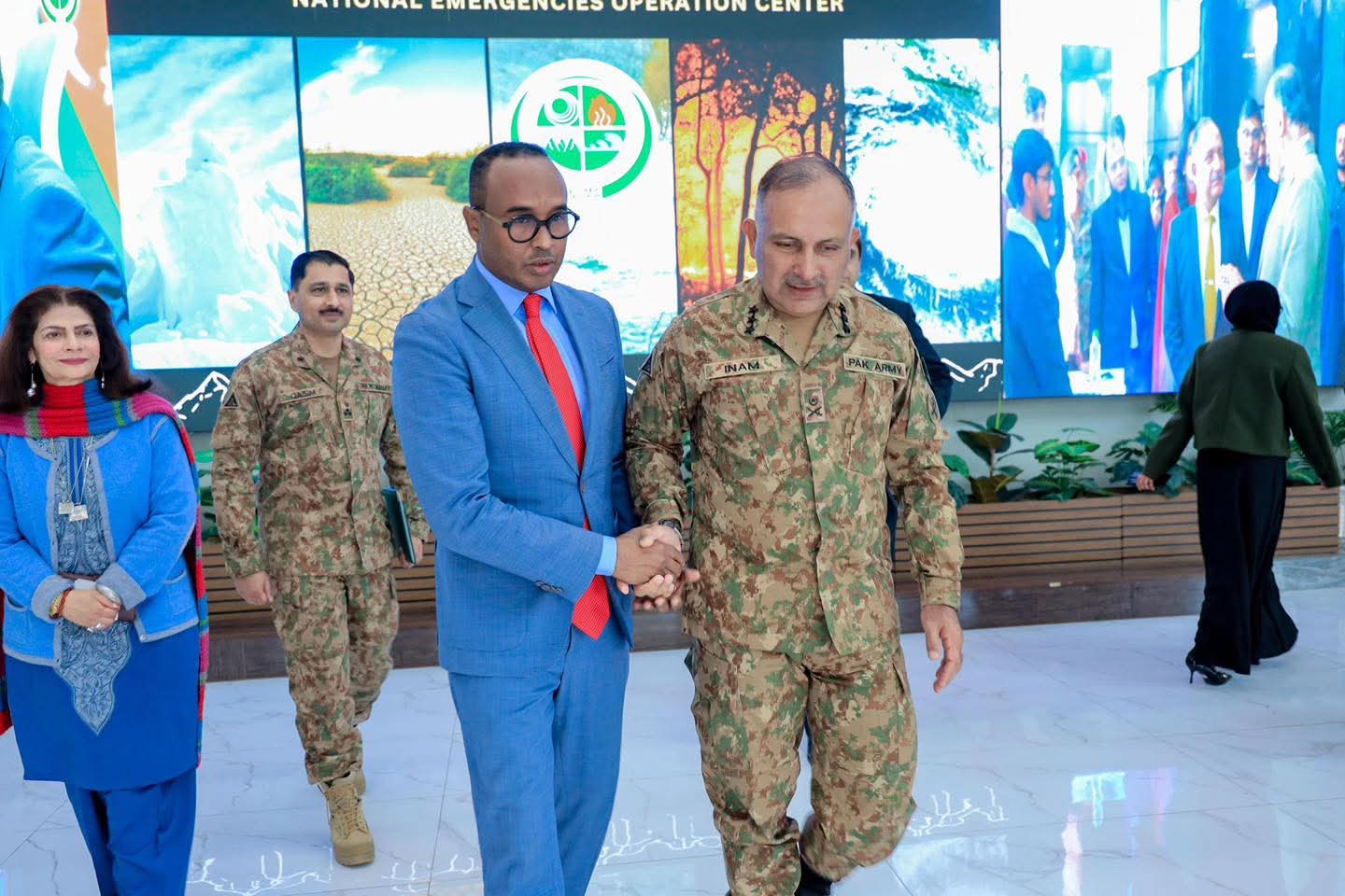Guddoomiyaha Hay’adda Maareynta Masiibooyinka (SoDMA), Mudane Maxamuud Macallin Cabdulle oo safar shaqo ku jooga dalka Bakistaan ayaa booqday xarunta Hay’adda Qaran ee Maareynta Masiibooyinka dalkaasi (NDMA), halkaas oo uu ku soo dhaweeyay dhiggiisa Inam Haider Malik.