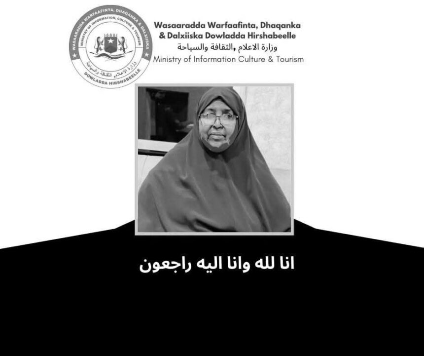 Miqdisho(SONNA);-Masuuliyiinta Wasaaradda Warfaafinta Dowlad-Goboleedka Hirshabeelle, oo ay hormuud ka yihiin Wasiirka Wasaaradda, wasiir-ku-xigeennada iyo dhammaan howl-wadeennada Wasaaradda, waxay tacsi tiiraanyo leh u dirayaan Agaasimaha Guud ee Wasaaradda Warfaafinta, Dhaqanka iyo Dalxiiska Hirshabeelle, Mudane Yaasiin Axmed Maxamuud, oo hooyadii Maryan Axmed Kulmiye ku geeriyootay magaalada Muqdisho.