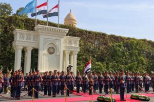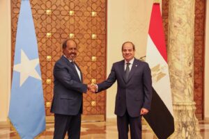 Muqdisho(SONNA):-Madaxweynaha Jamhuuriyadda Federaalka Soomaaliya, Mudane Xasan Sheekh Maxamuud, ayaa soo dhaweyn heer sare ah loogu sameeyay Qasriga Madaxtooyada Al-Ittixaadiya ee magaalada Qaahira, caasimadda Jamhuuriyadda Carbeed ee Masar, halkaas oo uu ku qaabilay dhiggiisa Masar, Mudane Cabdifataax Al-Sisi.