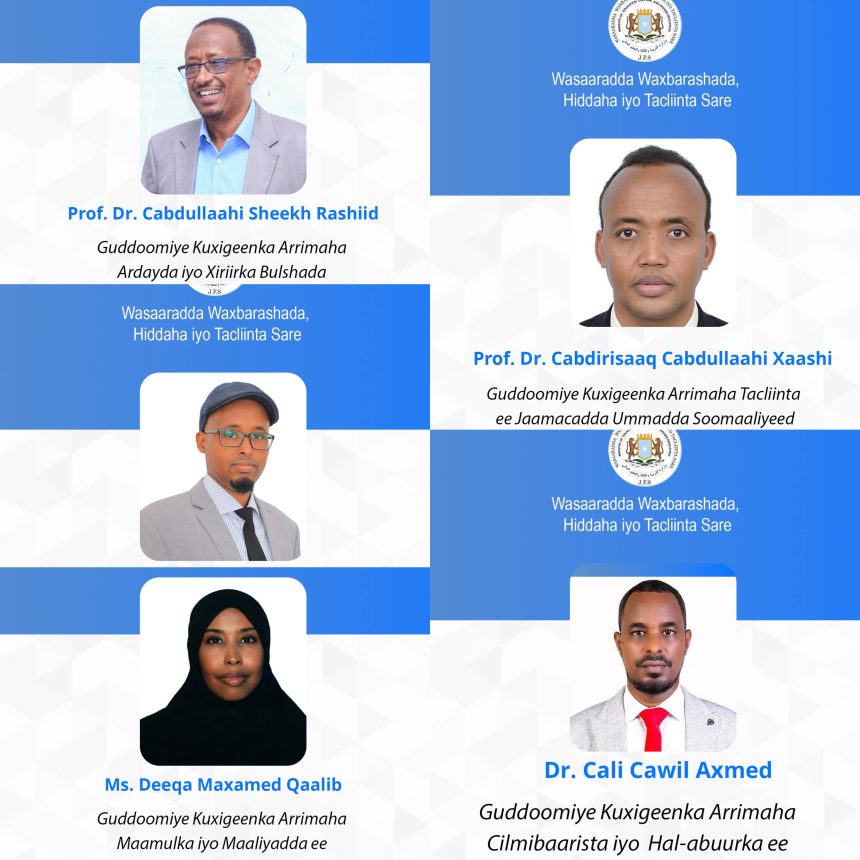 Muqdisho(SONNA):-Madaxweynaha Jamhuuriyadda Federaalka Soomaaliya, Mudane Dr. Xasan Sheekh Maxamuud, ayaa magacaabay masuuliyiinta hoos ku xusan ee loo magacaabay xilalka Guddoomiye Kuxigeennada Jaamacadda Ummadda Soomaaliyeed:
