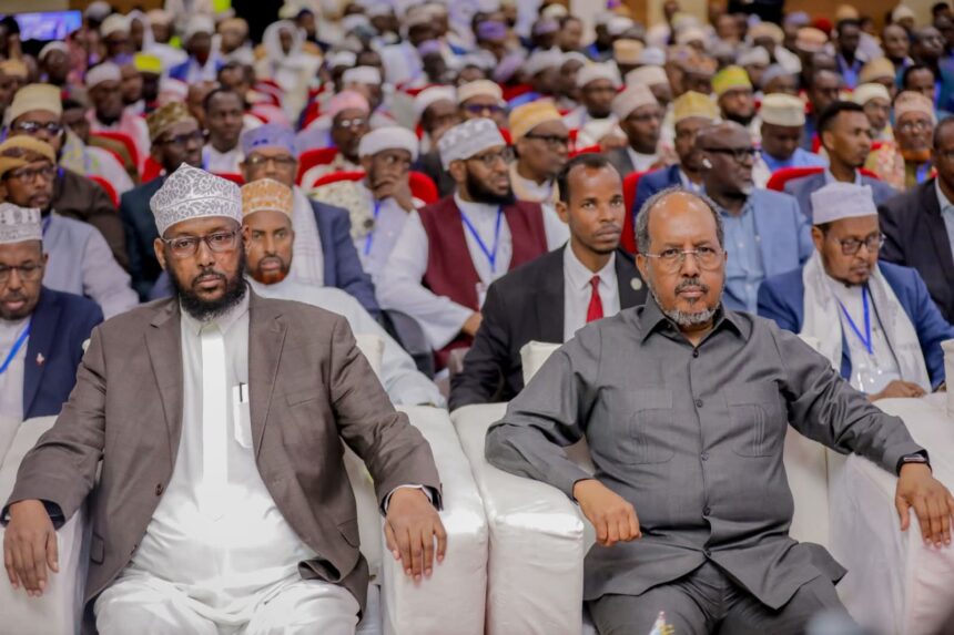 Madaxweyne Xasan Sheekh oo khudbad ka jeediyay shirka ayaa sheegay ahmiyadda ay culimada u leeyihiin dowlad-dhiska, baraarujinta bulshada iyo ka hortagga dhibaatooyinka maandooriyaha ee dalka ka jira.