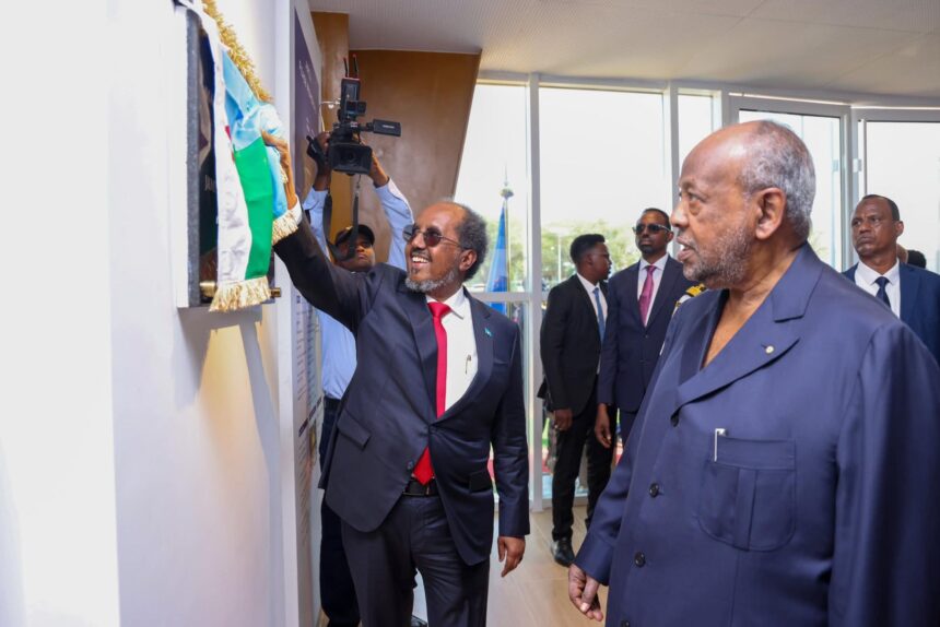 Madaxweyne Xasan Sheekh iyo dhiggiisa dalka Jabuuti oo si wadajir ah xarigga uga jaray dhismaha Taaladda Nabadda