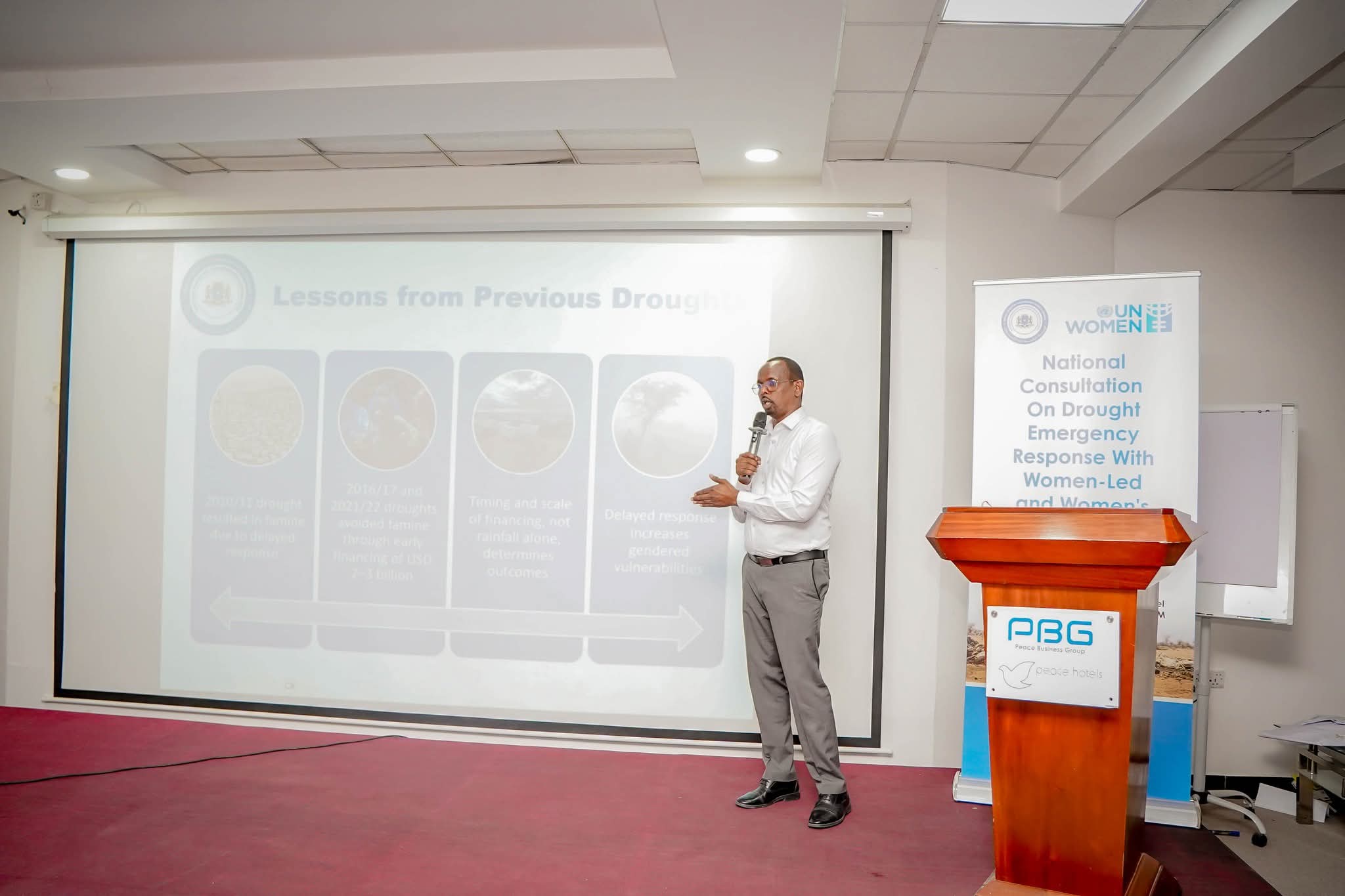 Muqdisho(SONNA):-Magaalada Muqdisho ayaa lagu soo gabagabeeyay Shirkii Wadatashiga Qaran ee ka-jawaabista xaaladda degdegga ah ee abaarah, kaas oo ay ka qayb qaateen hay’adaha dowladda iyo ururrada haweenka u dooda xuquuqda. Shirku wuxuu diiradda saaray saameynta abaarta ku yeelatay haweenka, carruurta, iyo bulshooyinka nugul, iyadoo la adkeeyay muhiimadda ka-jawaabista bani’aadannimo ee ku saleysan xog, caddaalad, iyo baahiyaha dhabta ah ee dadka ay dhibaatadu saameysay.