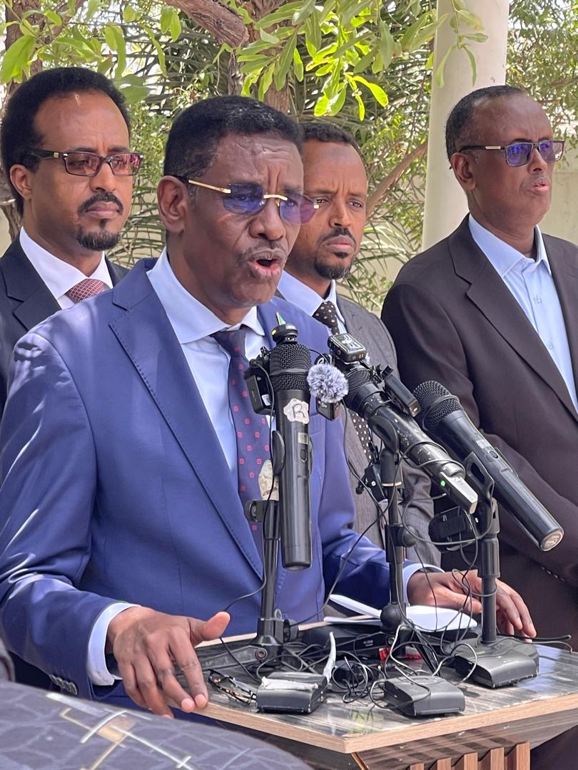 Muqdisho(SONNA):-Qaar ka mid ah xubnaha Golaha Wasiirrada ee Xukuumadda Federaalka Soomaaliya ayaa maanta shir jaraa’id ku qabtay magaalada Muqdisho, iyagoo faahfaahin ka bixiyay halka uu marayo dagaalka ka dhanka ah kooxaha khawaarijta, isla markaana shacabka uga digay inay la macaamilaan Khawaarijta.