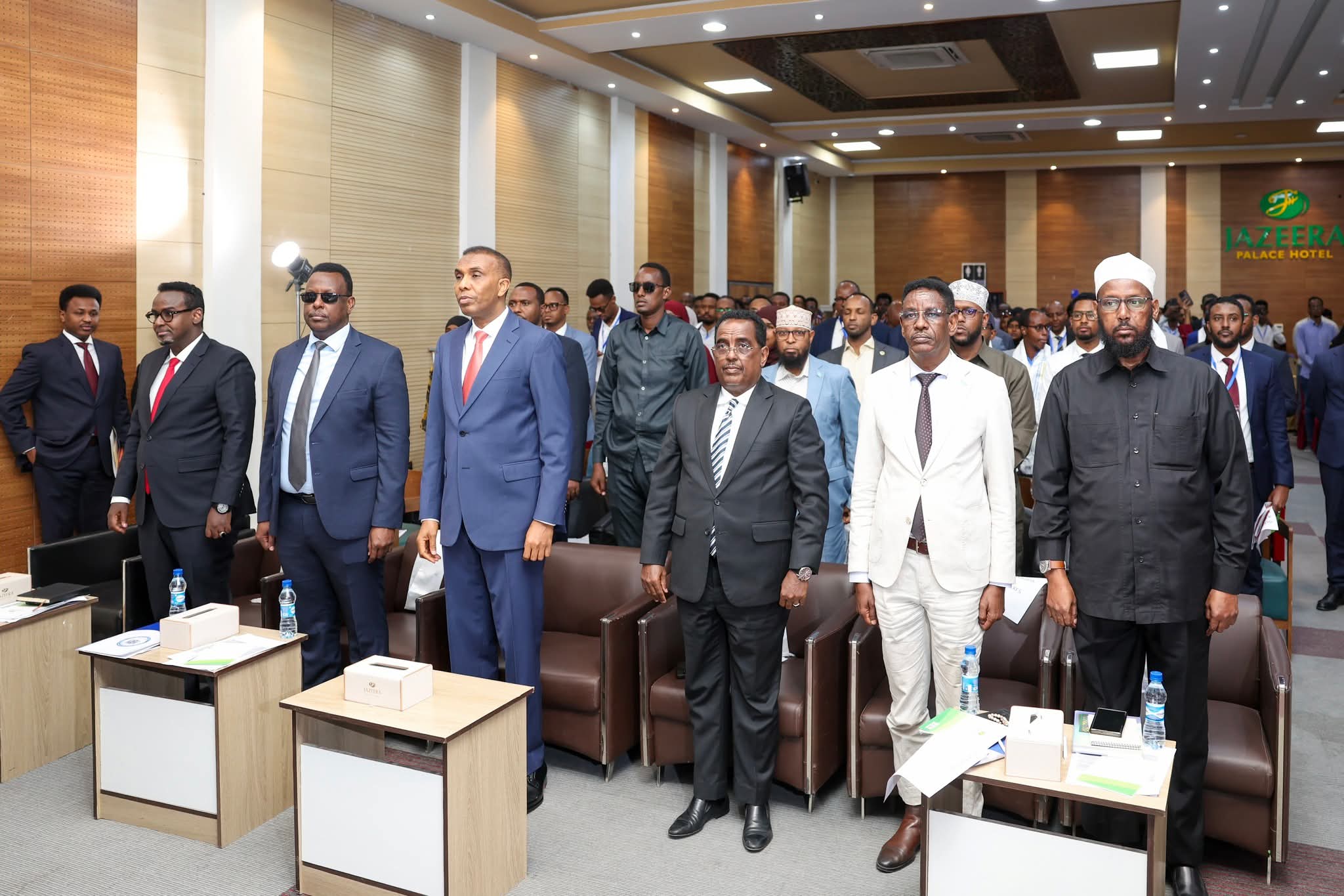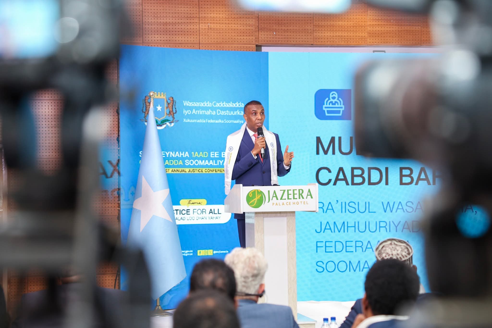 Muqdisho(SONNA):- Ra’iisul Wasaaraha Xukuumadda Jamhuuriyadda Federaalka Soomaaliya, Mudane Xamsa Cabdi Barre, ayaa furay Shirweynaha Koowaad ee Bahda Caddaalladda dalka, oo looga hadlayo horumarinta sharciga, isla xisaabtanka, iyo xoojinta kalsoonida ay bulshadu ku qabaan hey’adaha garsoorka.