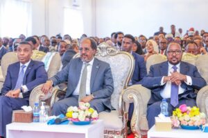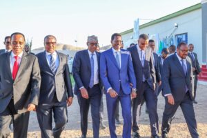 Laascaanood,(SONNA):- Ra’iisul Wasaaraha Xukuumadda JFS Mudane Xamsa Cabdi Barre, ayaa kala qeyb-galay Madaxweynaha Jamhuuriyadda Soomaaliya Mudane Xasan Sheekh Maxamuud, munaasabadda caleemo-saarka Madaxweynaha Dowlad-Goboleedka Waqooyi Bari Soomaaliya, Mudane Cabdulqadir Axmed Aw-Cali (Firdhiye), iyo iyo Madaxweyne Ku-xigeenka Mudane Cabdirashiid Yuusuf Jibriil, oo maanta ka qabsoomay magaalada Laascanood Xarunta Gobolka Sool.