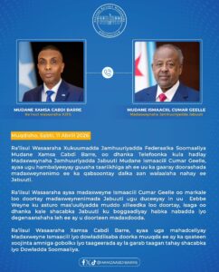 Ra’iisal wasaare Xamsa Cabdi Bare, ayaa ku mahadceliyay madaxweyne Ismaaciil iyo Dowladdiisa doorka muuqda ee ay ka qaateen xoojinta amniga gobolka iyo taageerada ay oa garab taagan tahay shacabka iyo Dowladda Soomaaliya.
