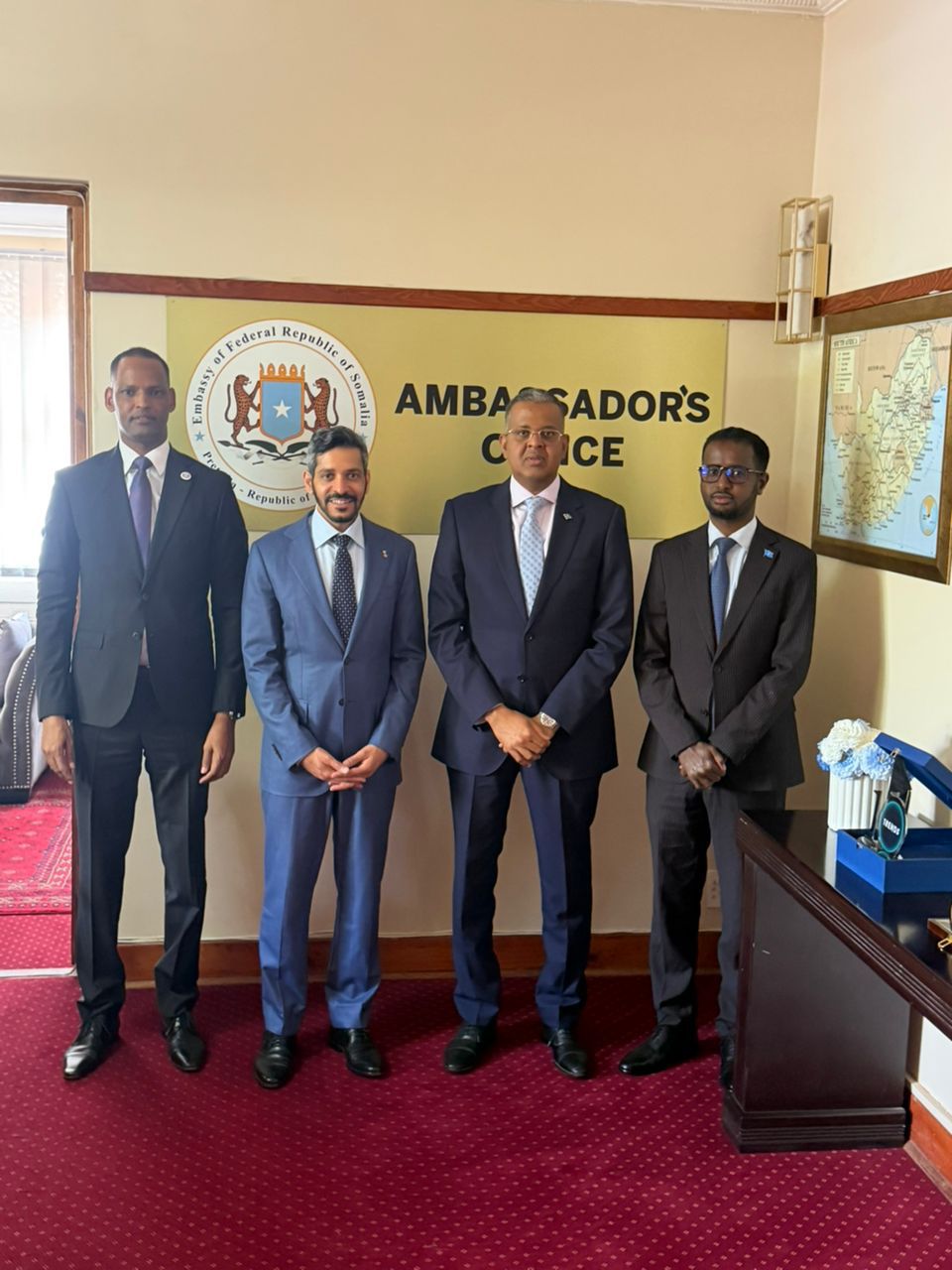 Safiitka Sucuudiga ayaa Xarunta Safaarada Soomaaliya Si Diiran Ugu Soo dhaweeyay Danjiraha Jamuuriyada Federaalka Soomaaliya U fadhiya Dalka Koonfur Afrika Amb Maxamed Sheekh Isaak