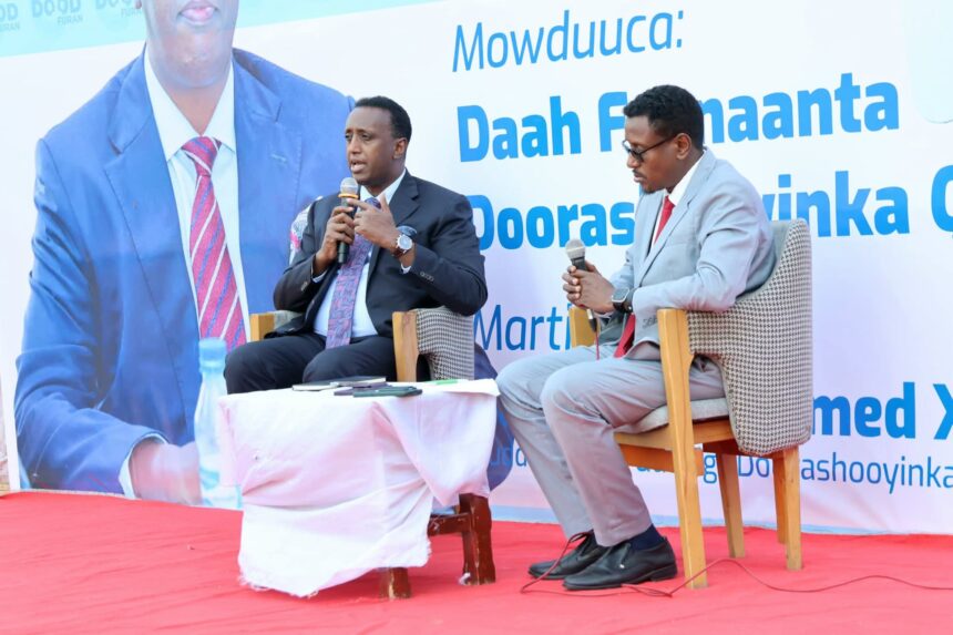 Kulanka doodda oo ay si weyn uga soo qeyb galeen qaar ka mid ah shacabka caasimadda Muqdisho, ayaa waxaa Guddoomiyaha lagu weydiiyay suโ€™aalo furan oo la xiriira diyaar-garowga iyo habsami u socodka doorashooyinka dhowaan dalka ka qabsoomaya.