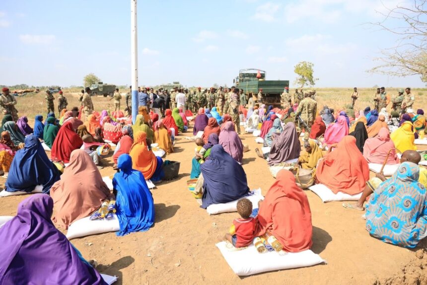 Gargaarkan ayaa waxaa qaybiyay Hoggaanka Isku-xirka Shacabka & Ciidanka XDS (CIMIC), waana qayb ka mid ah dadaallada Dowladda Federaalka ee lagu taageerayo bulshada ay argagixisadu dhibaateysay, si loo xoojiyo kalsoonida iyo wada-shaqaynta shacabka iyo Ciidanka Qalabka Sida.