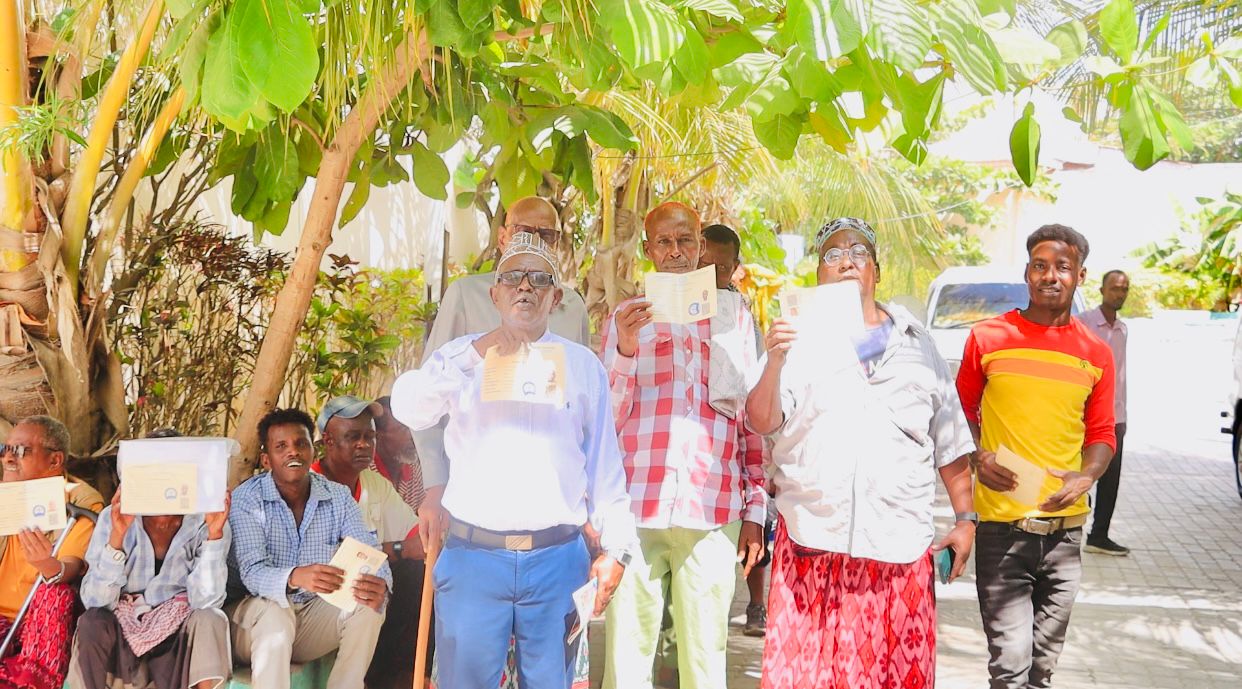 Maxamuud Xaaji Goobe oo ka mid ah waayeelka saaka qaadanayey kaarka cod bixinta ayaa yiri “Anigoo cimrigaan jiro saaka waxaan u soo baxay inaan qaato kaarkeyga codbixinta.”