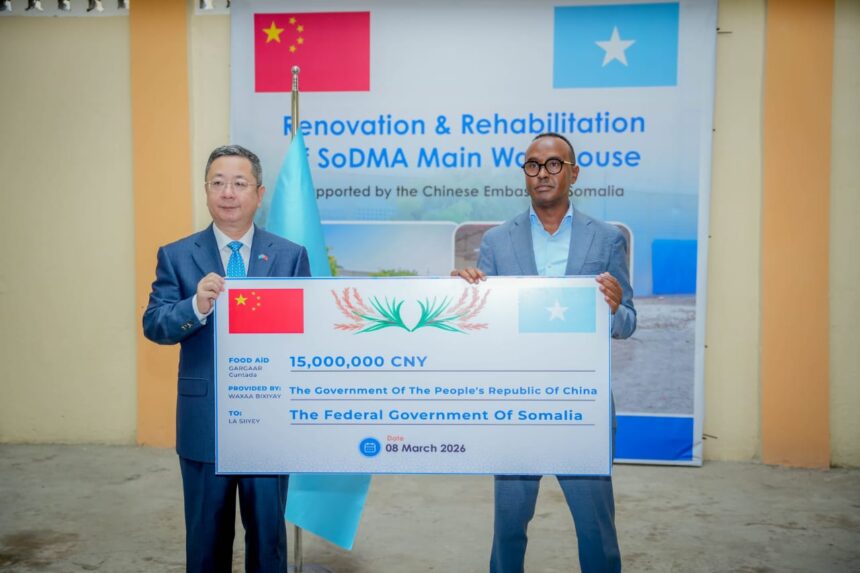Muqdisho(SONNA):-Guddoomiyaha Hay’adda Maareynta Masiibooyinka Qaranka Soomaaliyeed (SoDMA), Mudane Maxamuud Macalin Cabdulle, ayaa si rasmi ah uga guddoomay Safiirka Shiinaha ee Soomaaliya, Wang Yu, deeq lacageed oo dhan $2 milyan iyo raashin loogu talagalay in lagu taageero dadka ay saameeyeen abaaraha ka jira dalka.