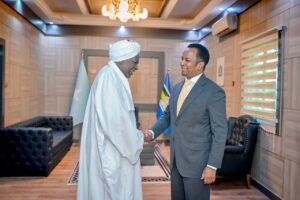 Muqdisho(SONNA):-Wasiirka Arrimaha Dibadda iyo Iskaashiga Caalamiga ah Jamhuuriyadda Federaalka Soomaaliya, Mudane Cabdisalaan Cabdi Cali Abdisalam Ali, ayaa maanta xafiiskiisa ku qaabilay Safiirka Jamhuuriyadda Suudaan u fadhiya Soomaaliya, Mudane Cabdiraxmaan Khaliil Axmed Abubakar, oo booqasho sharafeed ku yimid xarunta Wasaaradda Arrimaha Dibadda ee Muqdisho.