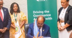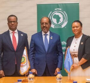 Muqdisho(SONNA):-Jamhuuriyadda Federaalka Soomaaliya ayaa si rasmi ah ugu biirtay Habka Is-Qiimeynta iyo Dib-u-Eegista Maamul-Wanaagga Afrika ee APRM [African Peer Review Mechanism (APRM)], oo ah habraac uu aas-aasay Midowga Afrika si dalalka xubnaha ahi ay isu qiimeeyaan, isu la xisaabtamaan, isla markaana u horumariyaan maamul wanaagga, hufnaanta iyo tayada hay’adahooda dowladeed.