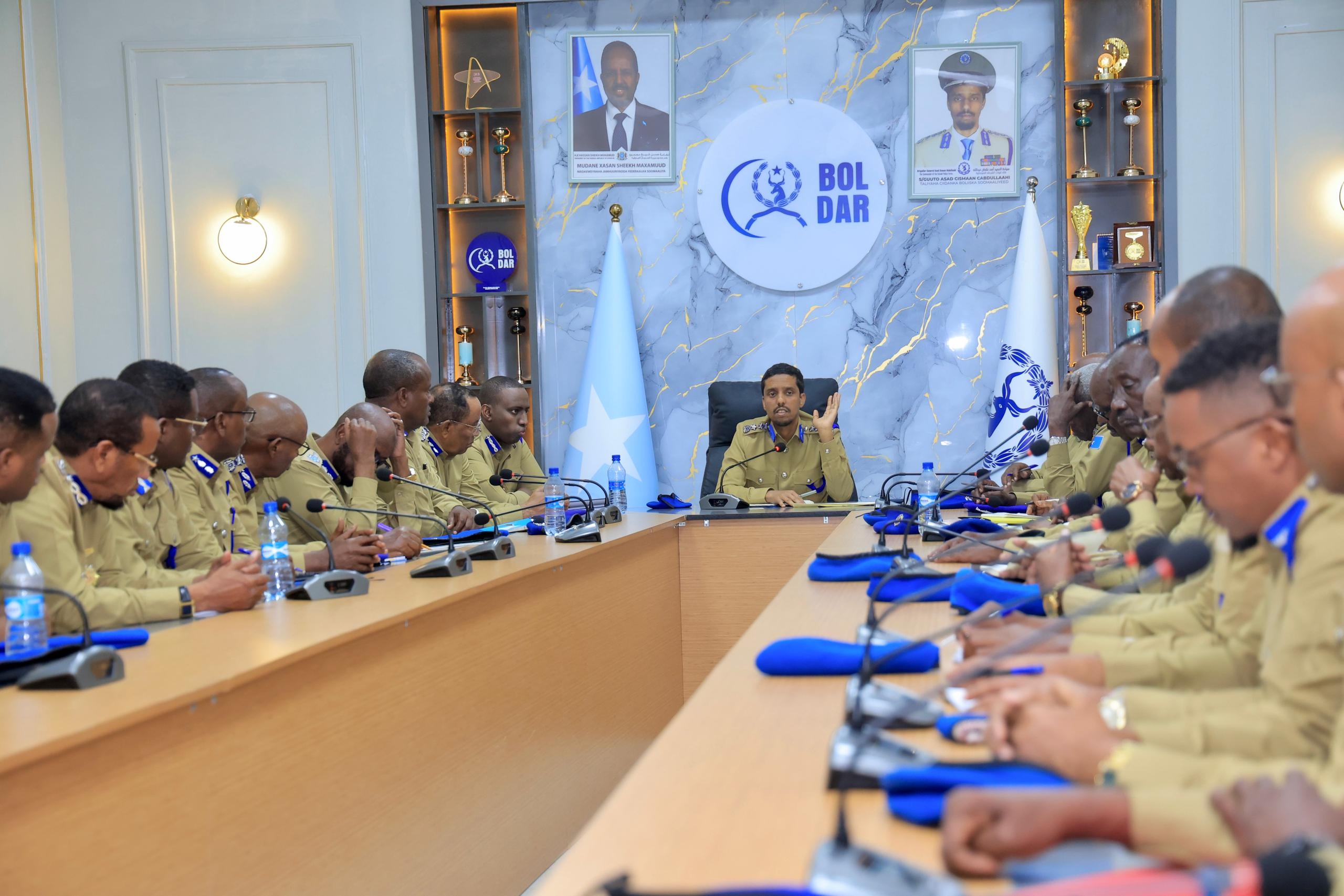 Muqdisho(SONNA):-Taliyaha Ciidanka Booliiska Soomaaliyeed Sarreeye Guuto Asad Cismaan Cabdullaahi ayaa shir gudoomiyey kulanka Todobaadlaha ee Hogaanada , Fadhiyada madaxa banaan , Qeybaha, Talisyada Dekedda iyo Garoonka Diyaaradaha oo looga hadlay Amniga , xoojinta Howlgalada ka dhanka ah maandooriyaha, Tahriibta sharci darada ah iyo u diyaar garowga Bisha barakaysan ee Ramadan oo foodda inagu soo haysa.