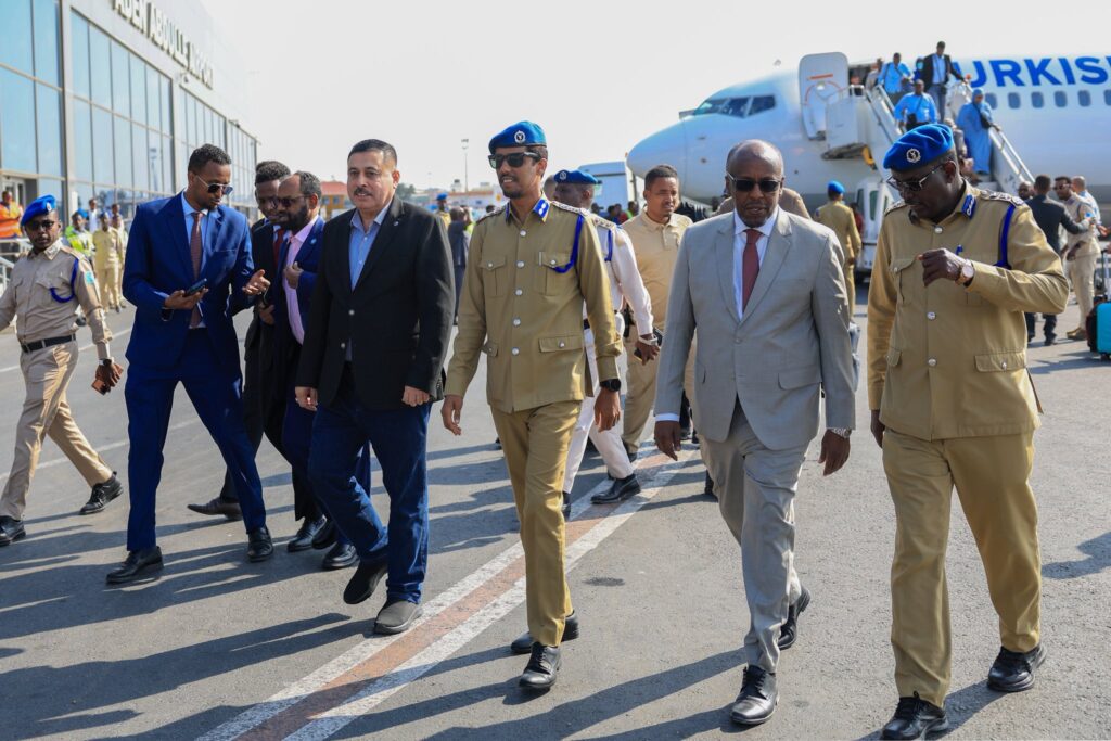 Soo dhawaynta wafdiga ayaa waxaa, Agaasimaha Guud ee Wasaaradda Amniga Gudaha Yuusuf Cali Maxamed iyo u qeybsanaha xiriirka Carabta Wasaaradda Amniga gudaha ee XFS Ismaaciil Macallin Cabdulle.