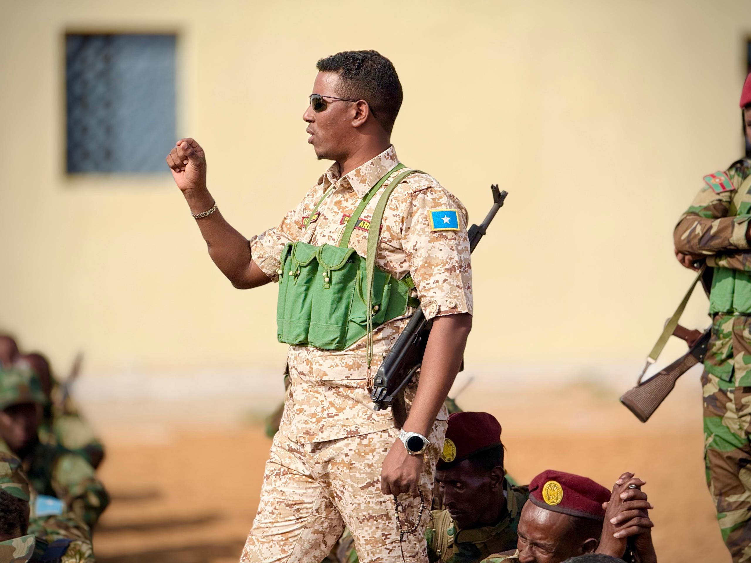 Muqdisho(SONNA):-Taliyaha Guutada 6-aad ee Qaybta 60-aad ee Ciidanka Dhulka XDS, G/le Dhexe Liibaan Yuusuf Gare, ayaa tababar u soo xiray cutubyo ka tirsan Ciidanka Guutada Lixaad, kuwaas oo muddo tababar uga socday Taliska Guutada 6-aad duleedka degmada Baraawe Gobolka Shabeellaha Hoose.