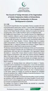 Muqdisho,(SONNA):- Golaha Wasiirrada Arrimaha Dibadda ee Ururka Iskaashiga Islaamka (OIC) ayaa maanta ku yeeshay magaalada Jeddah kulan ay kaga hadleen horumarrada iyo xaaladda ka taagan Soomaaliya.
