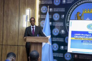 Muqdisho,(SONNA):- Wasiir-ku-xigeenka Wasaaradda Gaashaandhigga, Mudane Idiris Cusmaan Xaaji, ayaa maanta daahfuray tababar ku saabsan Hannaanka Diyaarinta Miisaaniyadda (Budget Formulation Process) oo loo qabtay howlwadeenada Wasaaradda Gaashaandhigga.