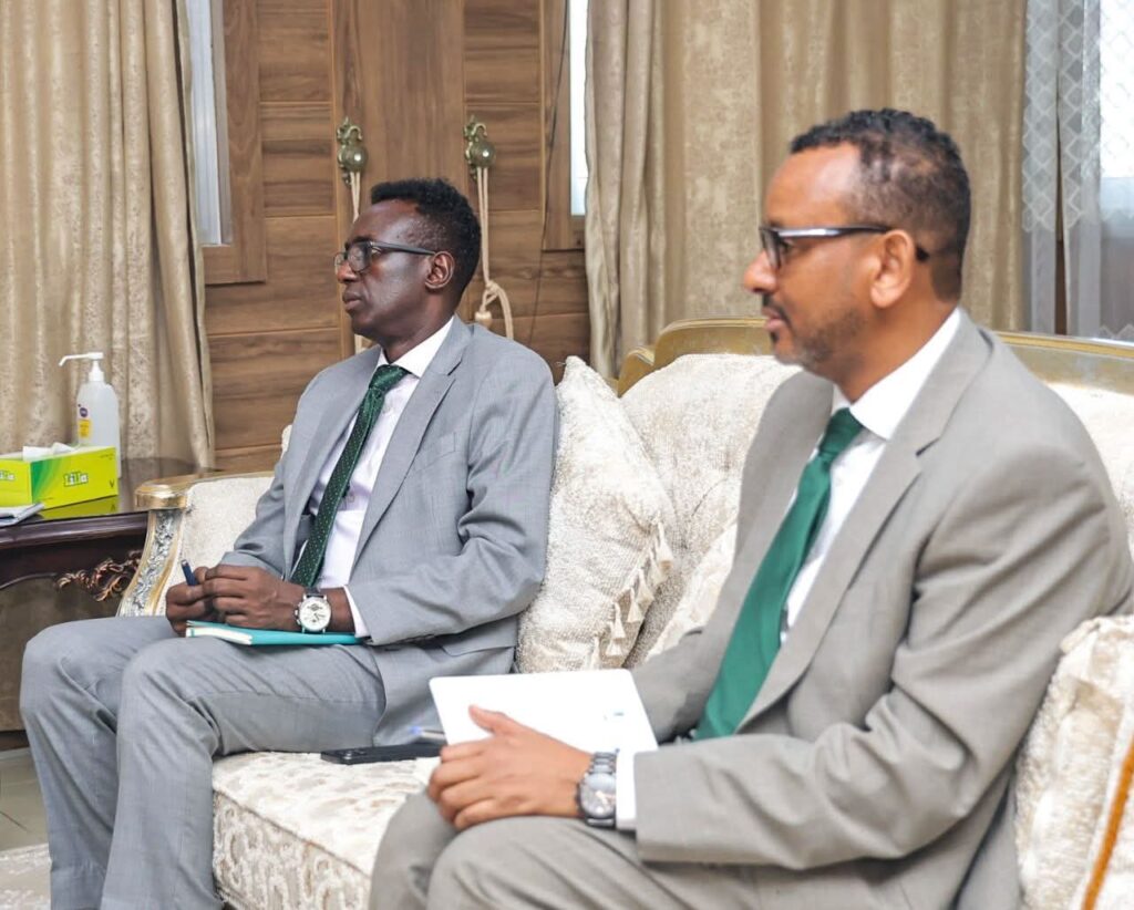 Muqdisho (SONNA): Wasiirka Amniga Gudaha ee Xukuumadda Federaalka Soomaaliya, Mudane Cabdullaahi Sheekh Ismaaciil (Fartaag) ayaa maanta xafiiskiisa ku qaabilay Danjiraha Dowladda Shiinaha u fadhiya Soomaaliya mudane Wang Yu iyo howlwadeeno ka mid ah Safaaradda.