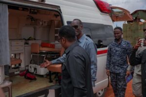 Wasiirka, ayaa degmada gaarsiiyay deeq isugu jirta dawooyin caafimaad, gaari ambalaas ah iyo raashiin noocyo kala duwan leh oo loo qaybiyey 500 qoys oo ka mid ah bulshada degmada gaar ahaan kuwa danyarta ah.