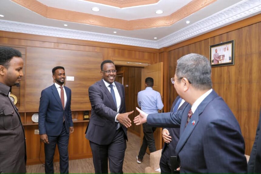 Wasiirka cadaaladda XFS xafiiskiisa ku qaabilay Safiirka Dowladda Shiinaha u fadhiya Soomaaliya