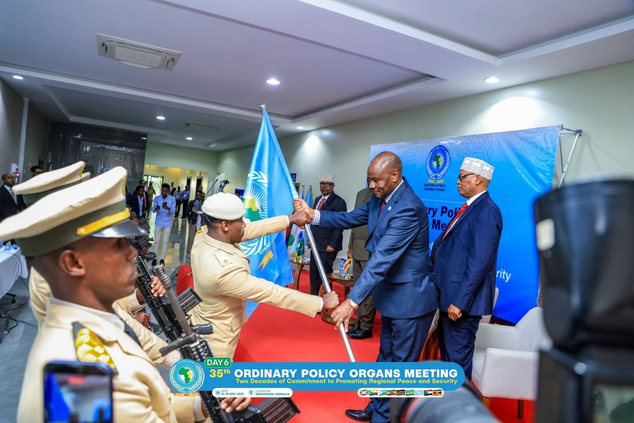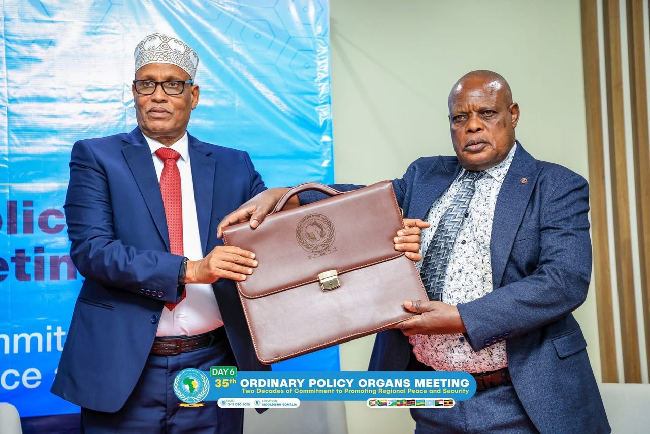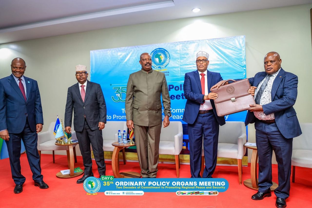 Muqdisho(SONNA):-Wasiirka Gaashaandhigga Xukuumadda Federaalka Soomaaliya, Mudane Axmed Macallin Fiqi, ayaa si rasmi ah hoggaanka Hay’adaha Siyaasadda Ciidanka Heeganka Afrikada Bari (EASF) ugu wareejiyay Jamhuuriyadda Uganda, isagoo xilka guddoomiyenimo ee Gudoonka Golaha Wasiirada iyo Taliyayaasha Ciidamada ku wareejiyay wakiilka Wasiirka Gaashaandhigga Uganda ahna Taliyaha Ciidamada Dhulka Uganda, S/Guuto Kayanja Muhanga, intii lagu guda jiray Kalfadhiga 35-aad ee Caadiga ah ee Golaha Wasiirrada Gaashaandhigga dalalka xubnaha ka ah EASF.