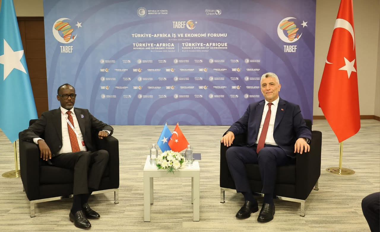 Istanbul(SONNA):-Wasiirka Ganacsiga iyo Wershadaha XFS Mudane Maxamuud Axmed Aadan iyo Wasiirka Ganacsiga ee Turkiga oo ka wada hadlay xoojinta iskaashiga ganacsi iyo suuq u helidda badeecadaha labada dal.