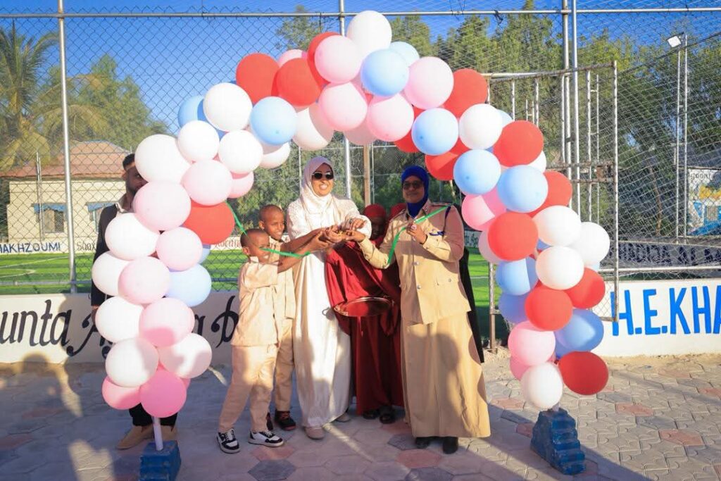 Muqdisho (SONNA): Wasiirka Wasaaradda Qoyska iyo Horumarinta Xuquuqul Insaanka XFS, Amb. Khadija Maxamed Al-Makhzoumi, ayaa xarig ka jartay garoon kubadda cagta ah oo ka hirgelisay xarunta barbaarinta agoonta Ciidammada Booliiska Soomaaliyeed, si carruurta agoonta ahi ugu ciyaaraan.